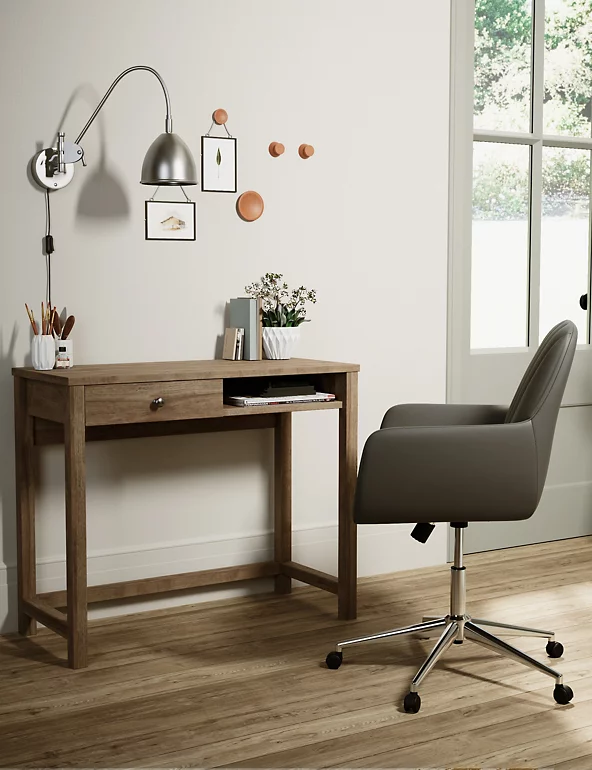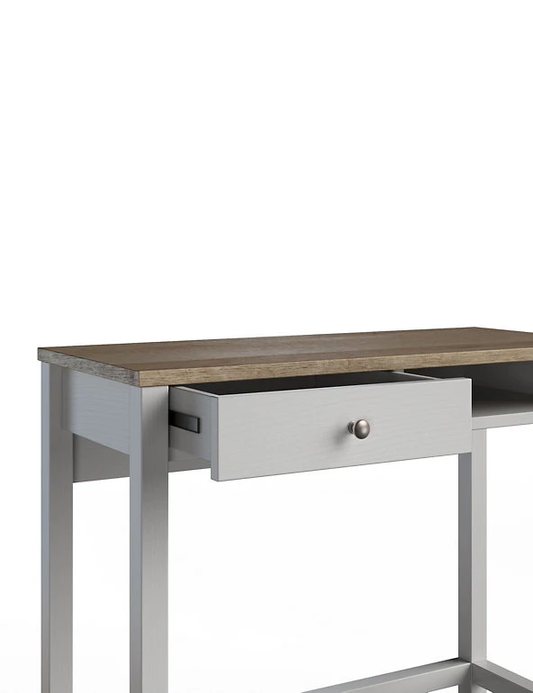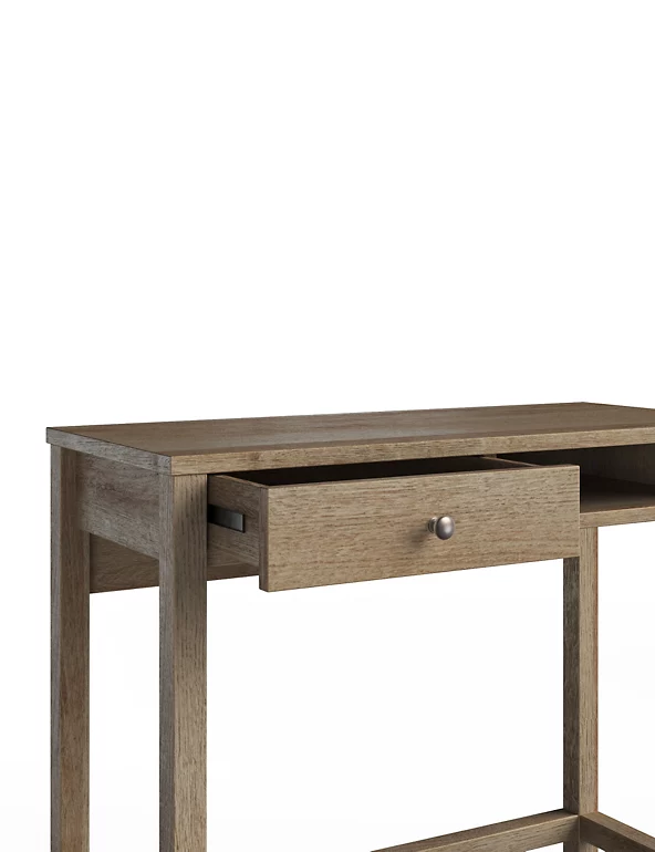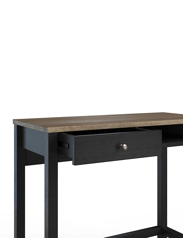 With its sleek design and brushed metal handles, this console table will add a modern touch to any space. It features a drawer and open shelf for storage. Plus, thanks to its versatile shape, it can be used as a desk or side table. Choose from a range of finishes to find the perfect piece for your home.
