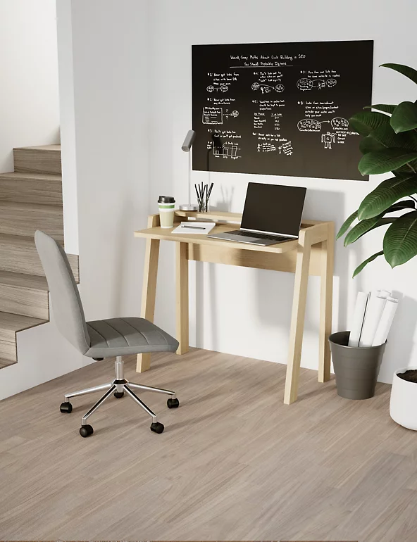Bring a modern twist to your home office with this stylish Loft desk, made in a compact design that’s perfect for smaller living spaces. We’ve crafted it with sustainable wood for a contemporary and versatile look. A handy slimline shelf means your monitor will be at the most comfortable height. Match with other items from the Loft range for a coordinated look.