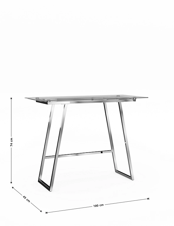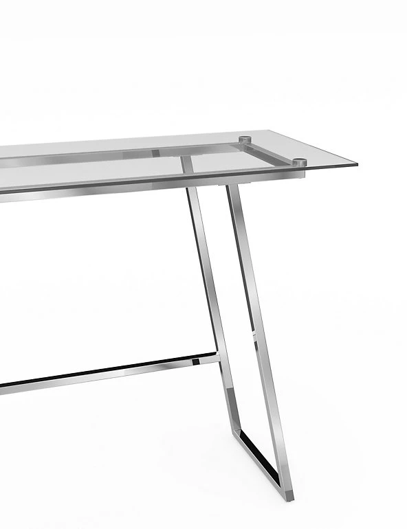 - Sleek and minimalist polished chrome and glass desk. Co-ordinates with the rest of the Milan range