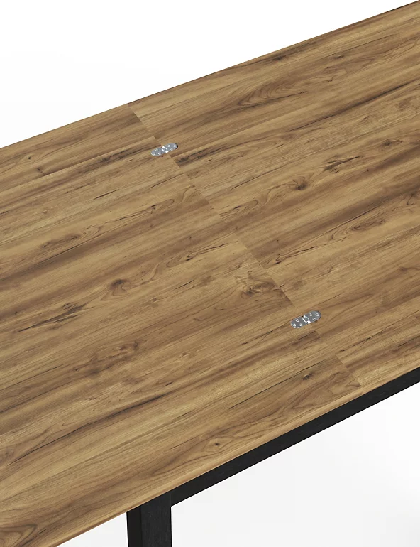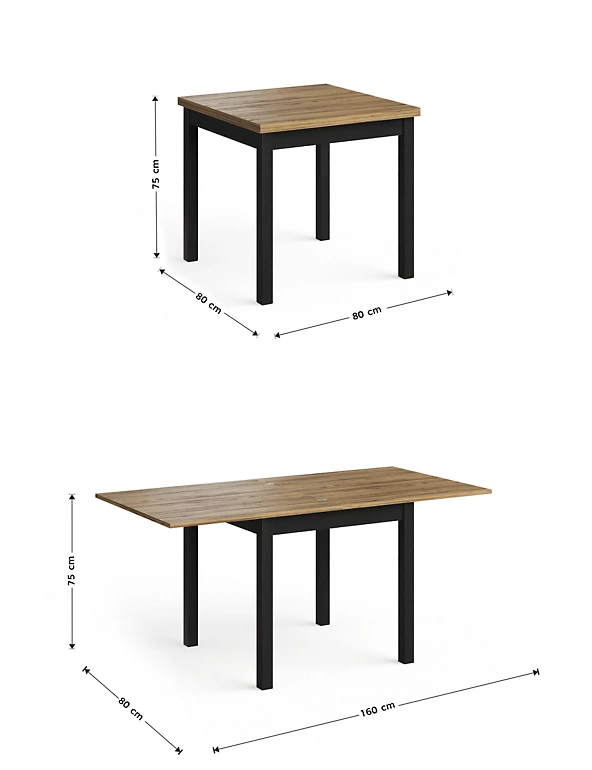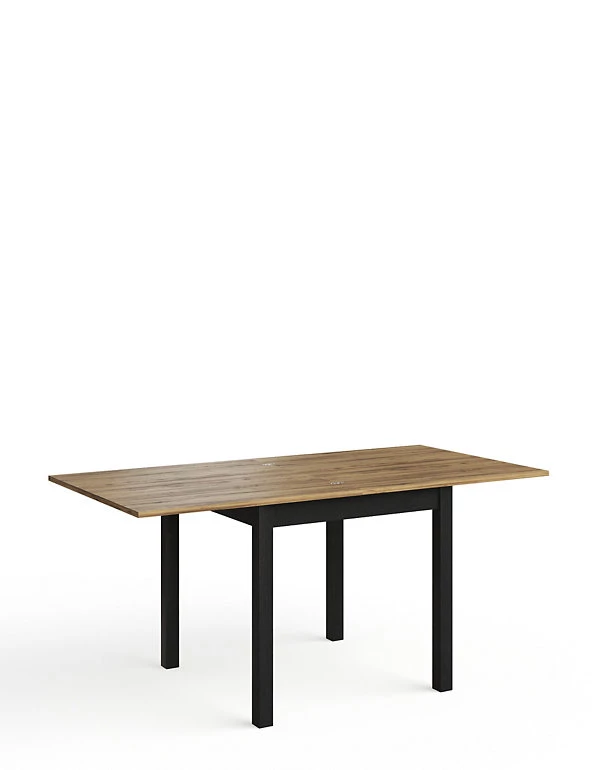 - Industrial Flip Top Extendable Dining Table finished in rustic oak effect top with black oak effect legs.