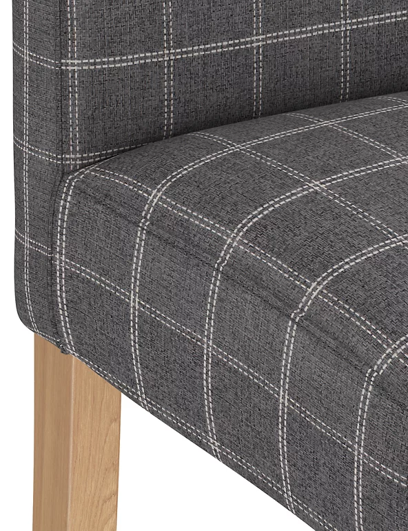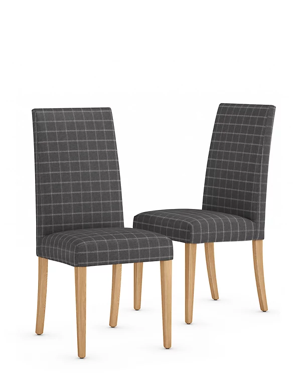Create a statement in your dining area with these bold checked chairs from our Alton range. The set of two features a clean and modern design where a slender high back is complemented by minimal angular legs.