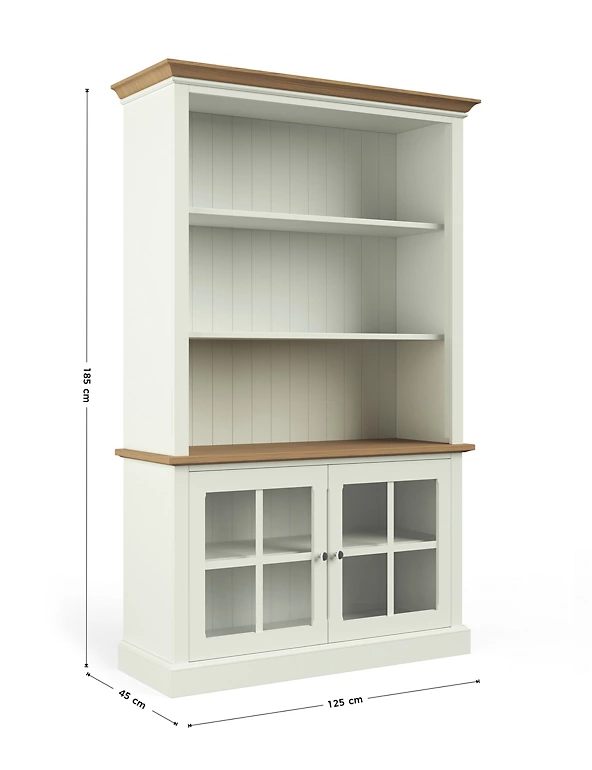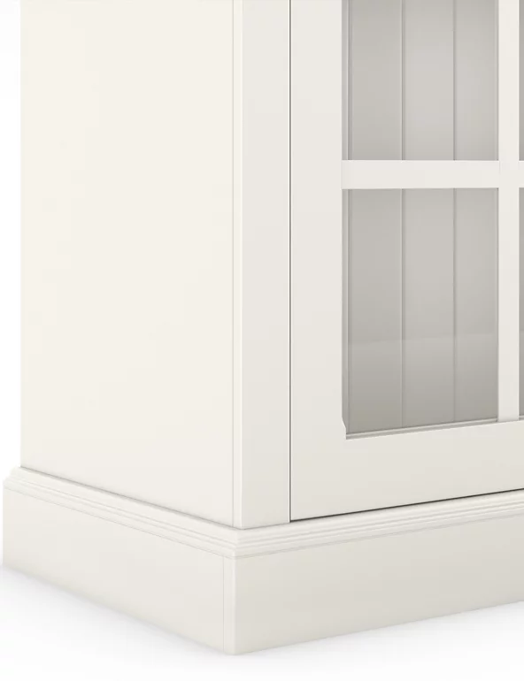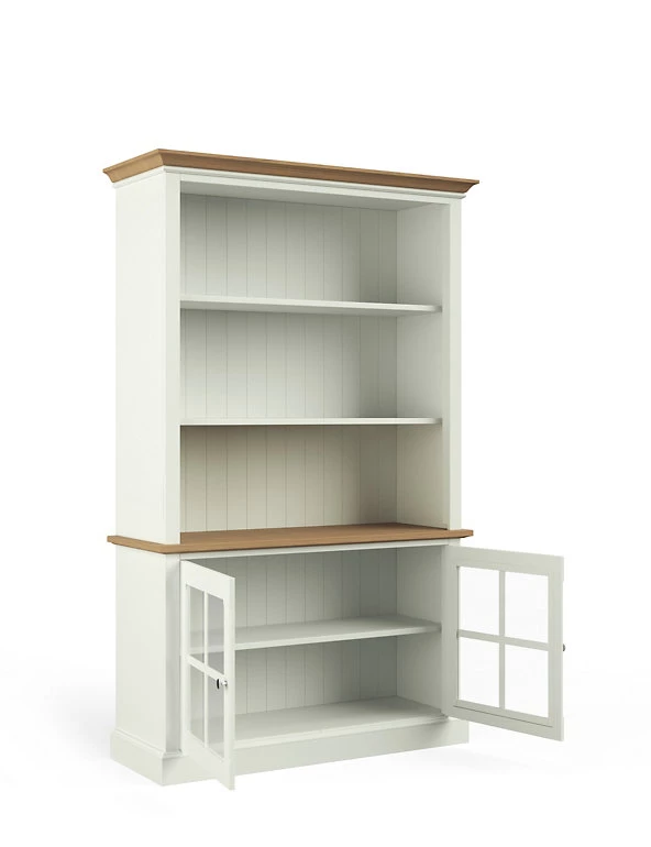 With this display cabinet from our Greenwich collection, you can store and display your favourite things in elegant style. The top shelves provide plenty of space for books, ornaments and photos, and there are a further two shelves underneath enclosed by clear tempered glass doors.