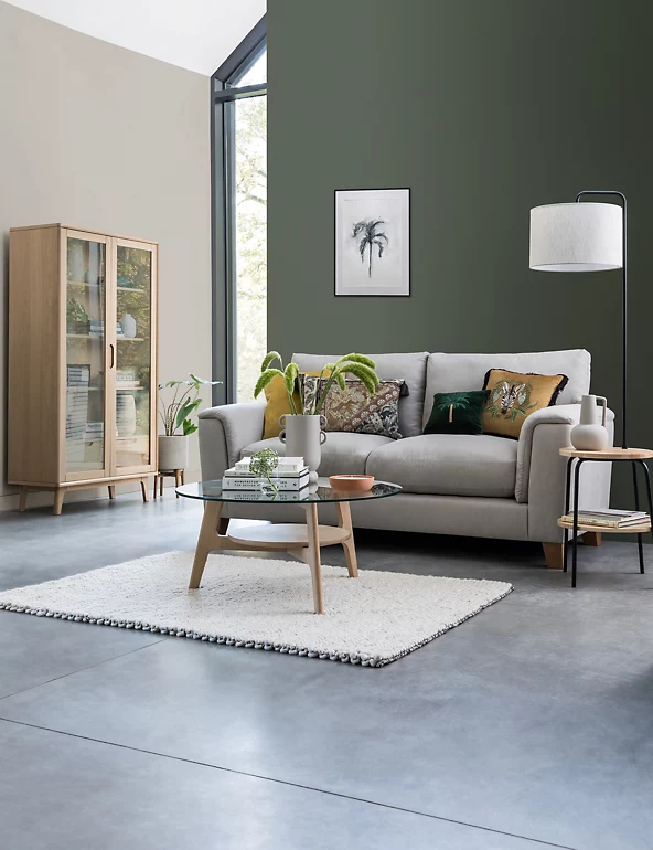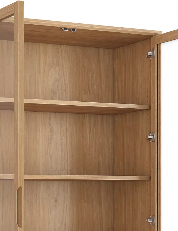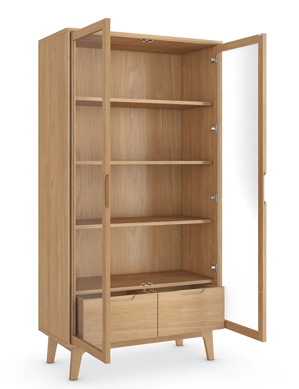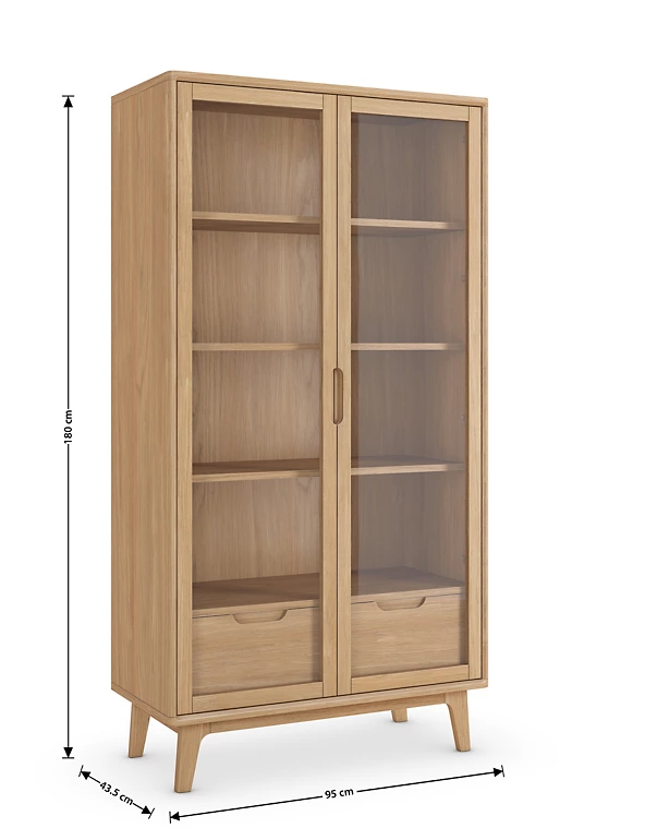 This spacious Nord display cabinet provides both storage and style. Keep your favourite things on show, thanks to the glass doors, and store other items out of sight in the two drawers. Crafted from gorgeous light-coloured oak, it is finished with soft-close mechanisms to minimise noise. Discover matching furniture in our full Nord range.