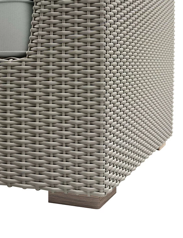 Prepare for feasts and fun in the garden with this modular seven seater Marlow lounge set. Beautifully woven from synthetic rattan and complete with weather-resistant cushions, this statement seven-seater is easy to wipe down after outdoor dinner parties. This multifunctional set comes with two footstools and a table to create the perfect setting for entertaining guests.