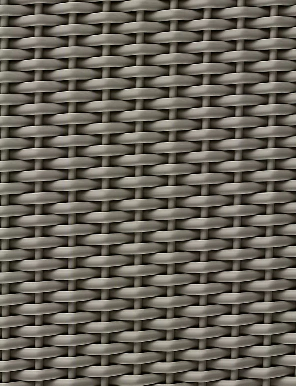 - Finish: synthetic wicker weaving, metal, water repellent cushion & glass