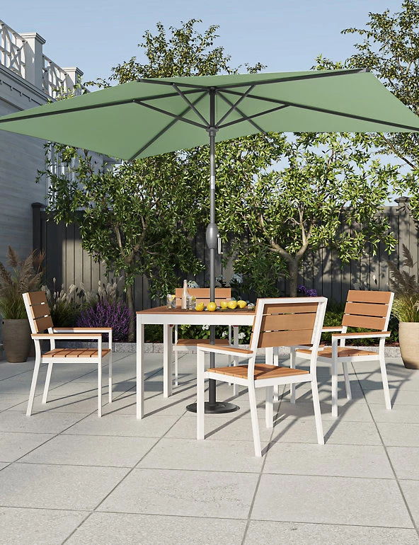Come sun or drizzle, this contemporary tilting parasol keeps you protected from the elements. A polished metal structure and rectangular shape give this practical outdoor piece a sophisticated look.