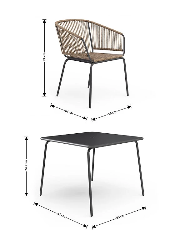- Dining chair: H74 x W55.5 x D63.5 cm