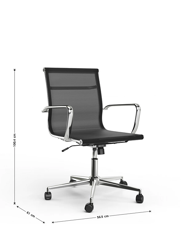 Upgrade your home office with this swivel-tilt chair from the Latimer collection. A mesh back offers breathability, while the chrome base and arms bring a contemporary look to the design. This stylish and practical piece has an adjustable seat for the perfect height.