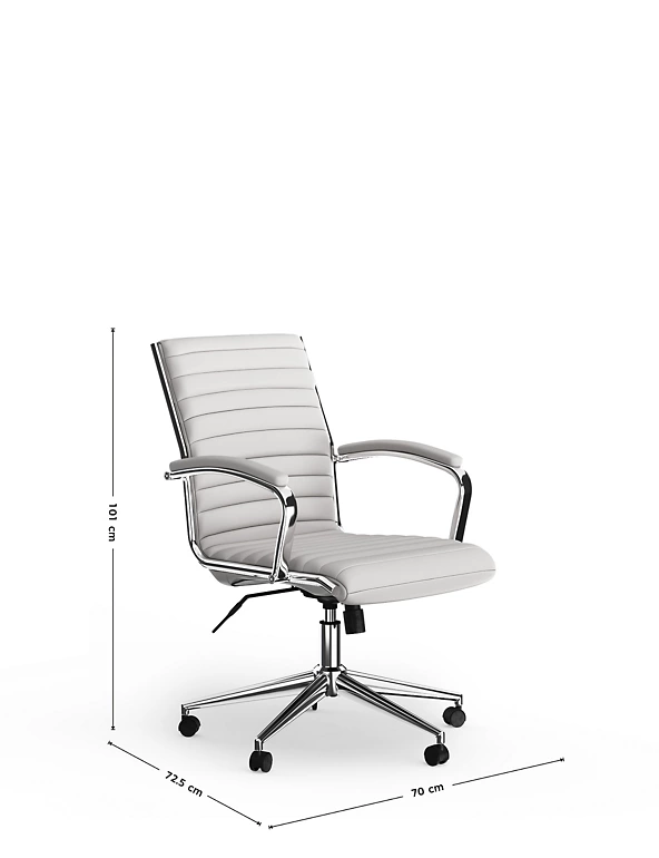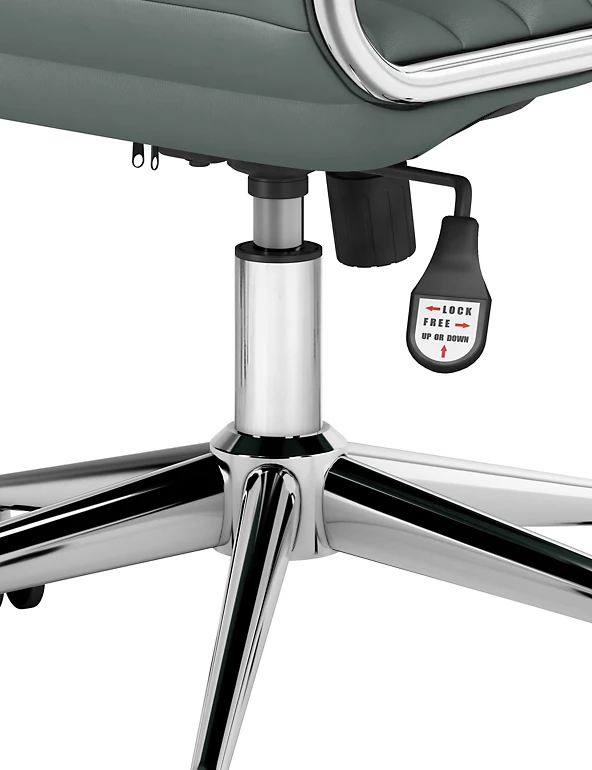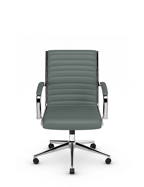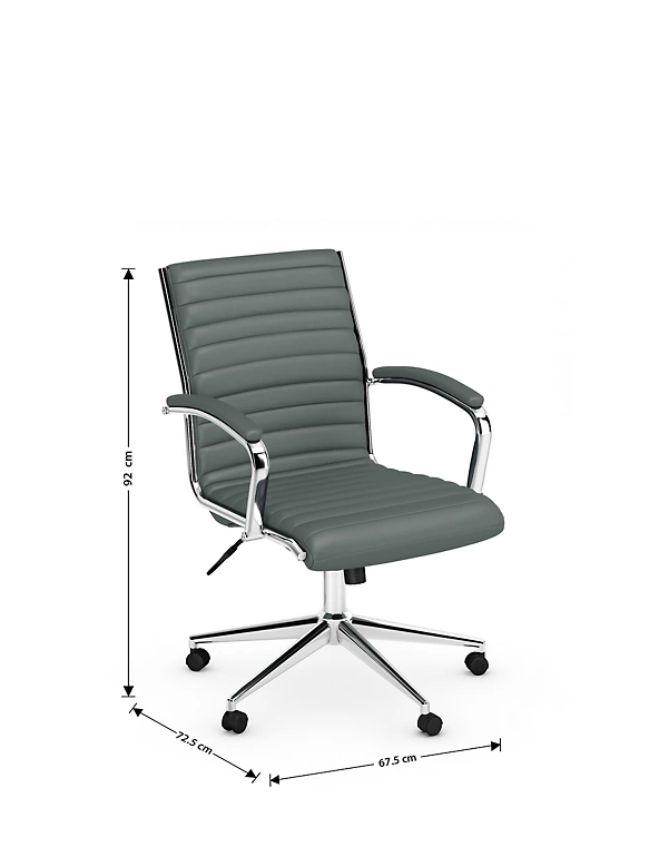 Comfort and sleek, modern style go hand in hand with the Latimer office chair. It combines a soft padded seat with a sturdy metal base and wheels that let you move around your workspace with ease.